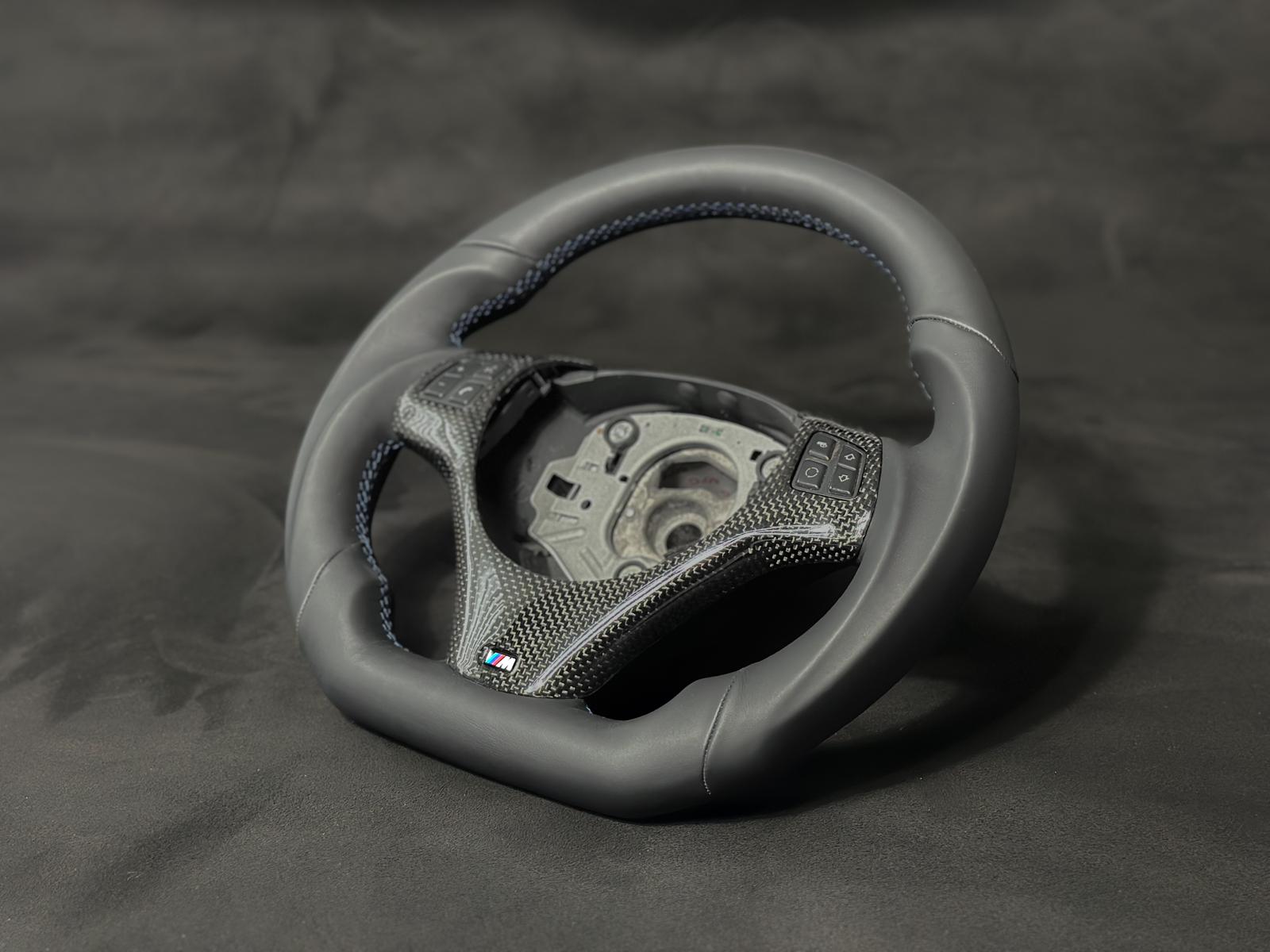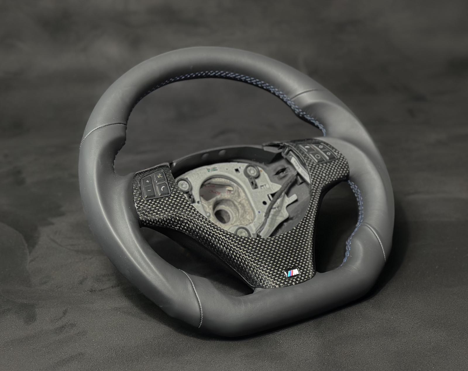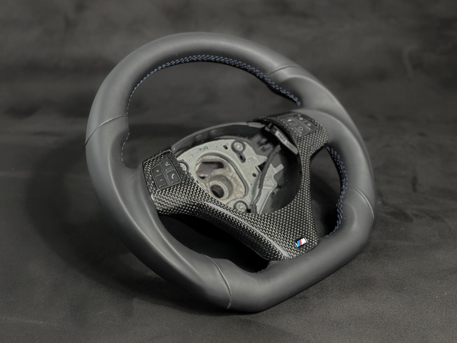 Upgrade your BMW E9x or E8x with this custom flat-bottom steering wheel crafted for precision and durability. Made from high-quality materials, it offers enhanced grip and an ergonomic design for improved control and a sportier feel. Expertly engineered to fit seamlessly, it elevates driving comfort while adding a distinctive, refined look to your vehicle’s interior. All custom steering wheels made by CarbonSteera are based on used OEM steering wheels to guarantee the fitment